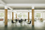 Bei beiden Varianten steht eine modern ausgestattete Teeküche zur Verfügung. Zur technischen Ausstattung gehören ein durchgängiger Kabelkanal, Glasfaseranschluss und Komfortlüftung. Die Flächen können selbstverständlich auch im Edelrohbau gemietet werden.